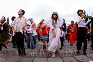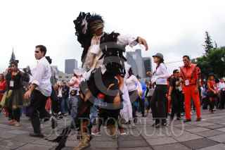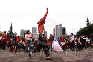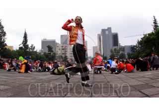 MÉXICO, D.F., 29AGOSTO2009.- Más de 50 mil personas se congregaron en la explanada del Monumento a la Revolución para bailar juntas el tema ''Thriller'' de Michael Jackson, rompiendo de esa manera el récord mundial Guiness. FOTO: SÁSHENKA GUTIÉRREZ/CUARTOSCURO.COM