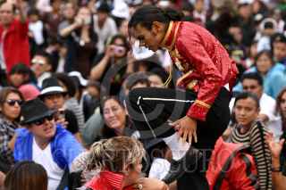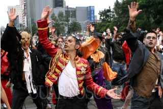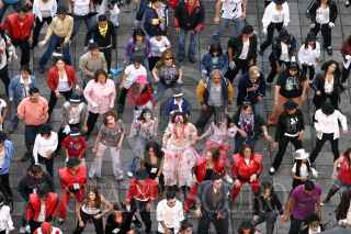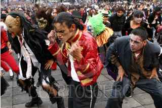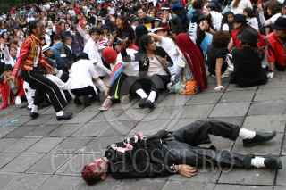 MÉXICO, D.F., 29AGOSTO2009.- Más de 50 mil personas se congregaron en la explanada del Monumento a la Revolución para bailar juntas el tema ''Thriller'' de Michael Jackson, rompiendo de esa manera el récord mundial Guiness. FOTO: RODOLFO ANGULO/CUARTOSCURO.COM