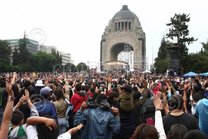 MÉXICO, D.F., 29AGOSTO2009.- Algunos participantes arrivaron desde tempranas horas para registrarse y maquillarse para participar en el Monumento a la Revolución donde esta tarde se reunieron más de 50 mil donde bailaron ''Thriller'' de Michael Jackson, rompiendo de esa manera el récord mundial Guiness. FOTO: SÁSHENKA GUTIÉRREZ/CUARTOSCURO.COM
