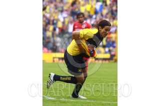 MÉXICO, D.F., 30AGOSTO2009.- El delantero Colombiano del Club America Andrés Chitiva, festejo su anotación de Gol derrotando al Club Toluca en juego de la jornada seis del Torneo de Apertura 2009 del futbol Mexicano. Torneo Apertura 2009. FOTO: SÁSHENKA GUTIÉRREZ/CUARTOSCURO.COM