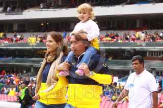 MÉXICO, D.F., 30AGOSTO2009.- Emilio Azcárraga Presidente del Grupo Televisa, pasea acompañado por su esposa Sharon Fastlitch y su hija previo al encuentro de las Águilas del Ámerica contra el Toluca , en la cancha del Estadio Azteca. FOTO: SÁSHENKA GUTIÉRREZ/CUARTOSCURO.COM