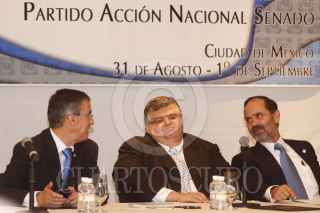 MÉXICO, D.F., 31AGOSTO2009.- Los senadores por la bancada panista, José González Morfín, Gustavo Madero, Agustín Carstens Carstens, Secretario de Hacienda se reunió esta tarde con senadores del PAN, el encuentro forma parte de la reunión plenaria de los panistas, previa al inicio de la 61 legislatura, que oficialmente se instalará mañana. FOTO: SÁSHENKA GUTIÉRREZ/CUARTOSCURO.COM