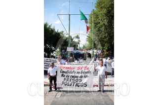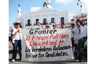 VILLAHERMOSA, TABASCO, 01SEPTIEMBRE2009.- Manifestantes del PRD se plantan en un mitin en los alrededores del Palacio de Gobierno, en donde lanzan consignas altisonantes al gobernador Andrés Granier Melo, con sus pancartas con distintas leyendas. FOTO: MARCO POLO GUZMÁN HERNÁNDEZ/CUARTOSCURO.COM