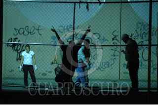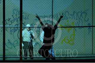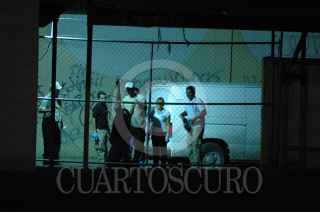 CIUDAD JUÁREZ, CHIHUAHUA,02SEPTIEMBRE2009.- Ayer en en esta ciudad fronteriza se encontró el cadáver de un hombre colgado de un enrejado en un estacionamiento de un club nocturno. La víctima fue esposada de ambas manos en una malla metálica y recibió varios impactos de bala por traficantes de drogas, según las versiones de los medios locales. Los agresores también dejaron un narcomensaje en el lugar. FOTO: ARCHIVO/ALBERTO VERA/CUARTOSCURO.COM