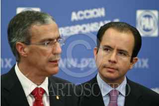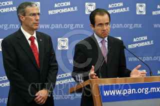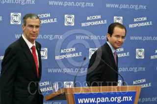 MÉXICO, D.F., 02SEPTIEMBRE2009.- El senador José Gonzalez Morfin y Cesar Nava, diputado federal y dirigente nacional del PAN al termino de una conferencia de prensa que ofrecieron a los medios en el centro ejecutivo nacional de este partido. FOTO: RODOLFO ANGULO/CUARTOSCURO.COM