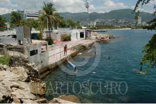 ACAPULCO, GUERRERO, 02SEPTIEMBRE2009.- Jóvenes de la costa ante la temperatura alta del calor optan por refrescarse tirándose un clavado en las aguas de la Bahía. FOTO: MARINO D. VALDEZ/CUARTOSCURO.COM