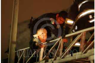 MÉXICO, D.F., 03SEPTIEMBRE2009.- Los servicios de emergencia en el Df, rescataron esta madrugada a un hombre en situación de calle que trepo al techo de un mercado en las calles de Zavala y Rosario en la colonia Zona Centro, los rescatistas subieron mas de cien metros. FOTO: LUZ ACEVEDO/CUARTOSCURO.COM