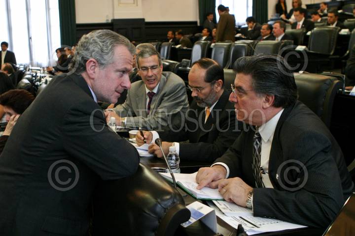 MÉXICO, D.F., 03SEPTIEMBRE2009.- Los senadores del PAN Ricardo Garcia Cervantes y Humberto Andrade dialogan con los senadores del PRD Carlos Navarrete y Graco Ramirez durante la sesión ordinaria del Senado de la República. FOTO: CUARTOSCURO.COM