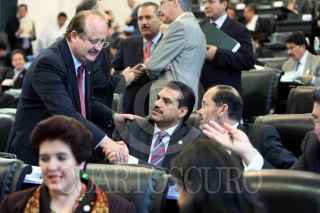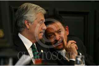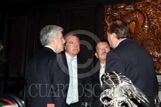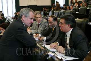 MÉXICO, D.F., 03SEPTIEMBRE2009.- Los senadores del PAN Ricardo Garcia Cervantes y Humberto Andrade dialogan con los senadores del PRD Carlos Navarrete y Graco Ramirez durante la sesión ordinaria del Senado de la República. FOTO: CUARTOSCURO.COM