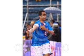 MÉXICO, D.F., 05SEPTIEMBRE2009.- Gabino Velasco, festejo su anotación a gol, con lo que la máquina cementera suma ya su segundo triunfo consecutivo en el Torneo Apertura 2009 al doblegar 2-0 a los Indios de Ciudad Juárez. FOTO: SÁSHENKA GUTIERREZ/CUARTOSCURO.COM
