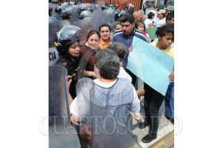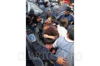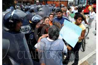 MÉXICO, D.F., 06SEPTIEMBRE2009.- Vecinos de la colonia Romero Rubio en la Delegación Iztacalco, bloquearon el eje cuatro oriente por la falta de energía eléctrica desde hace tres días, al lugar llegaron elementos del cuerpo de Granaderos para desalojar a estas personas y dejar libre a la vialidad vehicular. FOTO: LUIS CARBAYO/CUARTOSCURO.COM