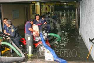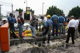 MEXICO, D.F.07SEPTIEMBRE2009.- Trabajadores de Protección Civil y del Sistema de Trasporte Colectivo Metro, trabajaron durante la mañana y la tarde para sacar el agua de la estación del Hangares, debido a que se inundó a más de cuatro metros de altura. FOTO: SAÚL LÓPEZ/CUARTOSCURO.COM