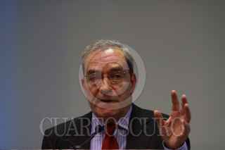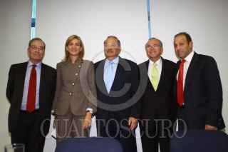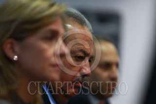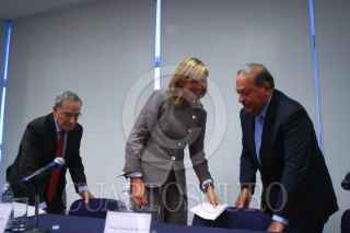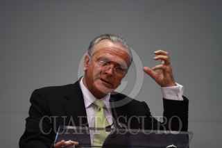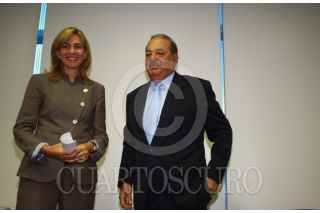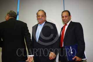 MÉXICO, D.F., 07SEPTIEMBRE2009.- Carlos Slim Helú; Presidente de Grupo Carso acompañadopor su hijo, Marco Antonio Slim Domit, director de Inbursa al término de la conferencia de prensa que ofrecieron esta tarde en las instalaciones de Grupo Inbursa, en la que dieron a conocer la unión entre Grupo Financiero Inbursa y La Caixa de Barcerlona. FOTO: SÁSHENKA GUTIÉRREZ/CUARTOSCURO.COM