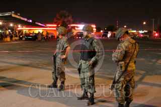 CIUDAD JUÁREZ, CHIHUAHUA, 07SEPTIEMBRE2009.- Cuatro hombres fueron acribillados en el interior del drive inn del motel Campo Real, cerca del puente internacional Zaragoza, en la escena del crimen fueron asegurados mas de 80 casquillos percutidos de arma larga, las victimas fueron identificadas en el lugar por sus familiares como los hermanos Enrique y Vicente Bernal, quienes habitaban en zona de Zaragoza, Luis López Gutiérrez, conocido como “El Palomo”, así como Eduardo Guillen, propietario del carro y quien actualmente es soldado en activo del ejercito norteamericano destacamentado en Fort Bliss, Texas. FOTO: BIENINFORMADO.COM/CUARTOSCURO.COM