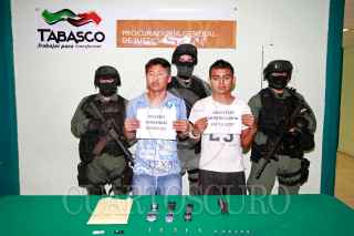 VILLAHERMOSA, TABASCO, 08SEPTIEMBRE2009.- Anoche en las instalaciones de la Policía Ministerial fueron presentados ante los medios informativos locales dos presuntos homicidas, los cuales son participantes en la ejecución del político Francisco Fuentes Espero, Esposa y dos menores hijos. Ante tal suceso varios periodistas intentaron realizar cuestionamientos a los detenidos pero no lo lograron debido a que las autoridades ministeriales no lo permitieron. FOTO: MARCO POLO GUZMÁN HERNÁNDEZ/CUARTOSCURO.COM