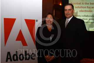 MÉXICO, D.F., 08SEPTIEMBRE2009.- Lori de Furio, evangelista de Adobe acompañada por Mauricio González posaron para los fotografos al termino de la presentación del Adobe 9. FOTO: SÁSHENKA GUTIERREZ/CUARTOSCURO.COM
