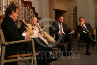 MÉXICO, D.F., 09SEPTIEMBRE2009.- Durante la presentación y debate del libro Nota [N] Roja, la noche de ayer, en la Casa del Risco en San Ángel. Estuvieron presentes Francesc Barta Villar, autor del libro; Marco Lara Klahr, autor del libro; Jürgen Moritz, periodista, experto en medios de comunicación quien fungio como moderador; Ernesto López Portillo Vargas, director, de Insyde y Ricardo Rocha, periodista e informador. FOTO: GUADALUPE CARRILLO/CUARTOSCURO.COM