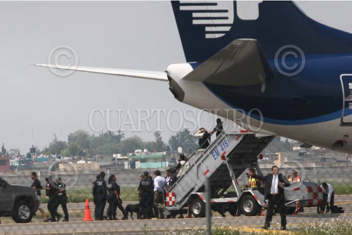 MEXICO, D.F., 09SEPTIEMBRE2009.- Elementos de la Policía Federal, resguardan en hangar de la PFP, despues que fueron trasladados a las instalaciones a los presuntos secuestradores del vuelo 576 de Aeroméxico que había sido retenido en el aeropuerto. FOTO: SAÚL LOPEZ/CUARTOSCURO.COM