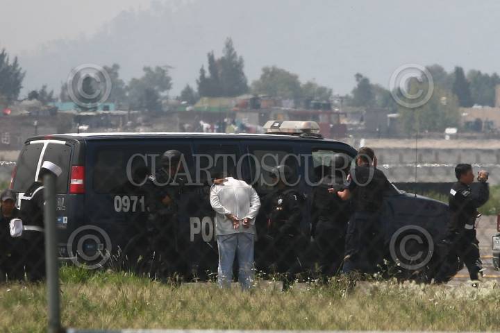 MEXICO, D.F., 09SEPTIEMBRE2009.- Elementos de la Policía Federal, resguardan en hangar de la PFP, despues que fueron trasladados a las instalaciones a los presuntos secuestradores del vuelo 576 de Aeroméxico que había sido retenido en el aeropuerto. FOTO: SAÚL LOPEZ/CUARTOSCURO.COM