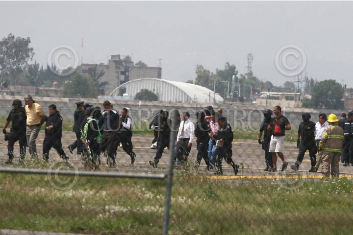 MEXICO, D.F., 09SEPTIEMBRE2009.- Elementos de la Policía Federal, resguardan en hangar de la PFP, despues que fueron trasladados a las instalaciones a los presuntos secuestradores del vuelo 576 de Aeroméxico que había sido retenido en el aeropuerto. FOTO: SAÚL LOPEZ/CUARTOSCURO.COM