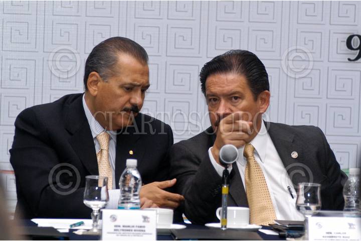 MEXICO,D.F., 09SEPTIEMBRE2009.- El senador Carlos Navarrete conversa con Enrique Iglesias, secretario general Iberoamericano en America Latina y la senadora Yeidkol Polevnesky durante la inauguración del foro "Una banca de desarrollo para el crecimiento economico y la generación de empleo". FOTO: CUARTOSCURO.COM