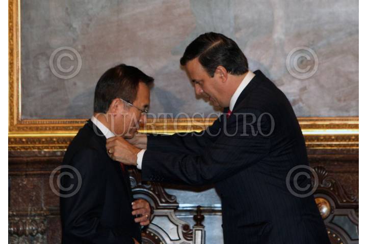 MÉXICO, D.F., 10SEPTIEMBRE2009.- Tadatoshi Akiba, alcalde de Hiroshima, fue declarado como Huesped Distinguido por Marcelo Ebrard Casaubon, jefe de Gobierno capitalino. FOTO: CUARTOSCURO.COM
