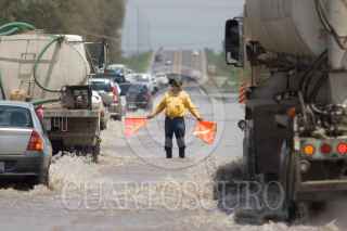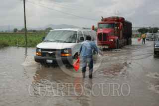 QUERETARO, QUERETARO, 10SEPTIEMBRE2009.- Las intensas lluvias han ocasionado inundaciones afectando la carretera a la Sierra Gorda de Querétaro, así como el acceso al Aeropuerto Internacional de Querétaro. FOTO: DEMIÁN CHÁVEZ/CUARTOSCURO.COM