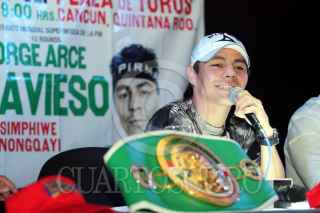 CANCÚN, QUINTANA ROO, 10SEPTIEMBRE2009.- Jorge "Travieso" Arce y Humberto "La Zorrita" Soto, durante la confencia de prensa para presentar la proxima pelea "Que Viva México De Un Solo Golpe", este 15 de septiembre en la plaza de toros de esta ciudad. En la gala boxistica tambien participara Ulises "El Archie" Solis y el nigeriano peso completo Samuel Peter. FOTO: AMARANTHA PRIETO/CUARTOSCURO.COM
