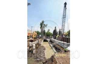 TLALNEPANTLA, ESTADO DE MÉXICO, 11SEPTIEMBRE2009.- En el tramo afectado del emisor poniente en la colonia Valle Dorado la Comisión Nacional de Agua, comenzaron a colocar barras de acero para evitar otra inundación en la colonia como se presentó a principios de la semana. FOTO: LUIS CARBAYO/CUARTOSCURO.COM