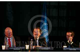 MÉXICO, D.F., 11SEPTIEMBRE2009.- Charles Hitchcock, presidente de la 62ª Conferencia Anual DIP/NGO; durante su participación en la ceremonia de clausura de la 62 Conferencia Anual de Información Pública de la ONU y las Organizaciones No Gubernamentales (DIP/ONG) “¡Desarme ahora! Trabajemos por la paz y el desarrollo” que se realizo en el ex Convento de San Hipolito. FOTO: RODOLFO ANGULO/CUARTOSCURO.COM