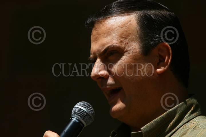 DOLORES, HIDALGO GUANAJUATO 12SEPTIEMBRE2009.- Marcelo Ebrard Jefe de Gobierno del Distrito Federal por el presidente municipal de la entidad Luis Gerardo Rubio recorren las calles de Hidalgo, durante la visita que ralizó el mandatario capitalino al estado teniendo a espaldas la catedral de Dolores FOTO: SÁSHENKA GUTIERREZ/CUARTOSCURO.COM