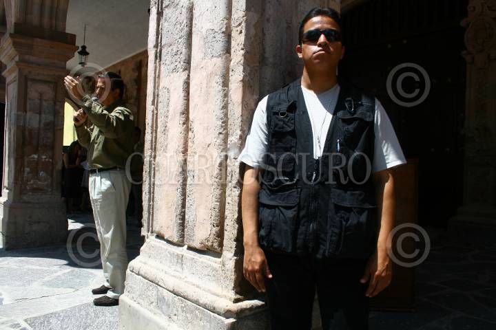 DOLORES, HIDALGO GUANAJUATO 12SEPTIEMBRE2009.- Marcelo Ebrard Jefe de Gobierno del Distrito Federal por el presidente municipal de la entidad Luis Gerardo Rubio recorren las calles de Hidalgo, durante la visita que ralizó el mandatario capitalino al estado teniendo a espaldas la catedral de Dolores FOTO: SÁSHENKA GUTIERREZ/CUARTOSCURO.COM