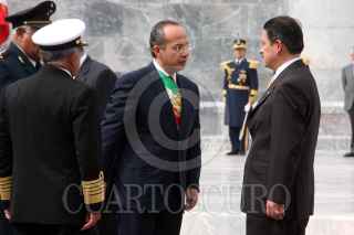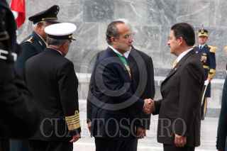 MÉXICO, D.F., 13SEPTIEMBRE2009.- Carlos Navarrete Ruiz, Presidente del Senado de la República, asistió a la Ceremonia Conmemorativa la CLXII Aniversario de la Gesta Heroica de los Niños Héroes de Chapultepec, realizado en el Altar de la Patria donde saludo al jefe del Ejecutivo federal, los secretarios de la Defensa Nacional y Marina. FOTO: CUARTOSCURO.COM