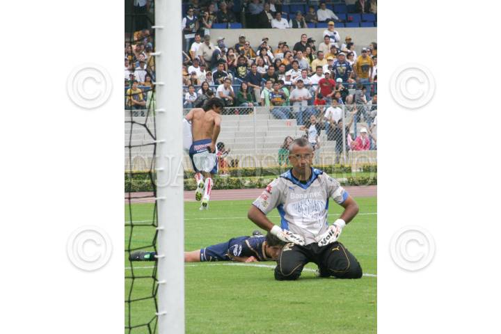 MÉXICO, D.F., 13SEPTIEMBRE2009.- Damián Álvarez del Pachuca momentos antes de anotar, burla la marca de Darío Verón y Marco Palacios jugadores universitarios, en la jornada 8 del Torneo Apertura 2009. Los Pumas de la UNAM perdieron nuevamente en el estadio Olímpico Universitario por un marcador de 1-2 en favor de los visitantes. FOTO: MISAEL VALTIERRA/CUARTOSCURO.COM