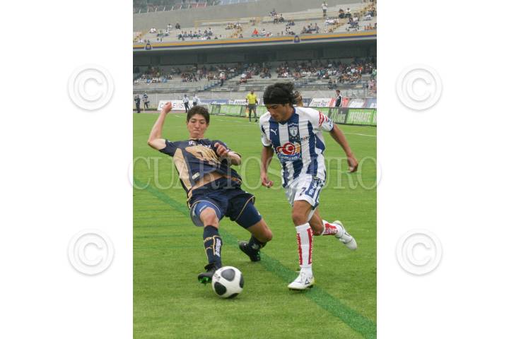 MÉXICO, D.F., 13SEPTIEMBRE2009.- Damián Álvarez del Pachuca momentos antes de anotar, burla la marca de Darío Verón y Marco Palacios jugadores universitarios, en la jornada 8 del Torneo Apertura 2009. Los Pumas de la UNAM perdieron nuevamente en el estadio Olímpico Universitario por un marcador de 1-2 en favor de los visitantes. FOTO: MISAEL VALTIERRA/CUARTOSCURO.COM