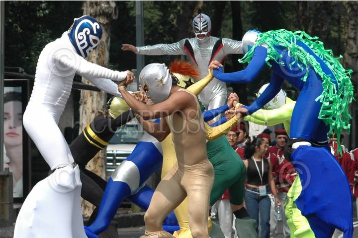 MÉXICO, D.F., 13SEPTIEMBRE2009.-Esta tarde inició sobre paseo de la Reforma, el desfile de Niños por el Bicentenario con carros alegóricos, deportistas y artistas sobre zancos. FOTO: LUZ MORENO/CUARTOSCURO.COM