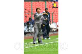 MÉXICO, D.F. 13SEPTIEMBRE2009.- Miguel Herrera Director Tecnico de los Estudiantes Tecos da instrucciones a su equipo, durante el encuentro de esta tarde con las Aguilas del America, quedando un marcador final de 5-0 favor America, encuentro jugado en la cancha del Estadio Azteca, en el cierre de la jornada 8 del Apertura 2009. FOTO: SÁSHENKA GUTIÉRREZ/CUARTOSCURO.COM