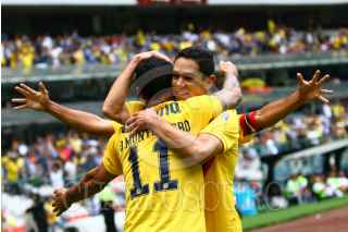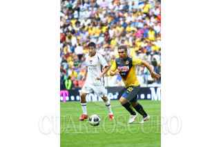 MÉXICO, D.F. 13SEPTIEMBRE2009.- El paraguayo Salvador Cabañas disputa el balon con el volante de Estudiantes, Rubens Sambueza, durante su encuentro de esta tarde en el Coloso de Santa Ursula quedando un marcador final de 5-0 favor America. FOTO: SÁSHENKA GUTIÉRREZ/CUARTOSCURO.COM