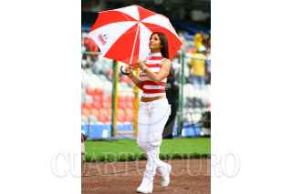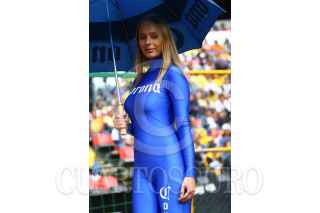 MÉXICO, D.F. 13SEPTIEMBRE2009.- Edecanes desfilan ante los asistentes al Estadio Azteca, donde se realizó el encuentro de las Aguilas del Amercia ante Estudiantes, en partido que marcó el cierre de la octava fecha del Torneo Apertura 2009 FOTO: SÁSHENKA GUTIÉRREZ/CUARTOSCURO.COM