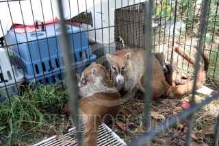 CANCÚN QUINTANA ROO, 14SEPTIEMBRE2009.- Autoridades ambientales rescatan del predio donde fueron envenenados 45 coaties , pequeños mamíferos parecidos a los mapaches. Los pocos que quedaron vivos de la manada serán trasladados a un parque ecológico. FOTO: AMARANTA PRIETO/CUARTOSCURO.COM