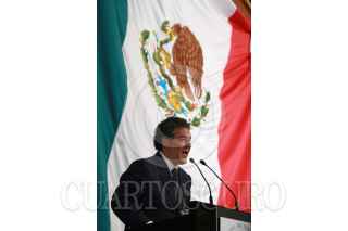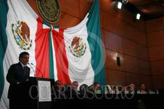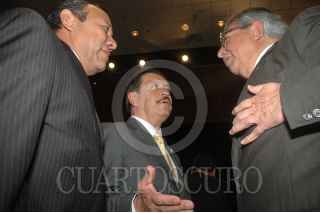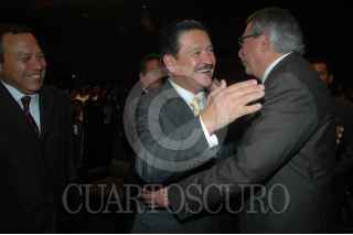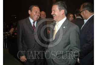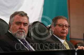 MÉXICO, D.F., 14SEPTIEMBRE2009.- Alejandro Encinas, coordinador de la bancada perredista en la Camara de Diputados, y Francisco Rojas, coordinador del Partido Revolucionario Institucional, durante la sesión conmemorativa del 135 Aniversario del Estado de Chiapas. FOTO: LUZ MORENO/CUARTOSCURO.COM