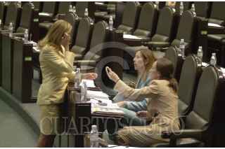 Diputadas panistas platican, antes de abandonar su curul, durante la sesión en la cámara baja. FOTO: Juan Pablo Zamora/CUARTOSCURO.COM