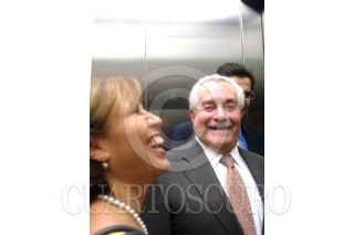 Ernesto Martens, secretario de Energía junto con Rosario Robles, presidenta nacional del PRD, en el previo a su llegada a la toma de protesta de Integrantes de la Cámara Nacional de la Industria de la Transformación, (CANACINTRA) en un hotel conocido del centro histórico. FOTO: Eunice Adorno/CUAROSCURO.COM