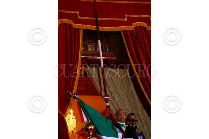 MÉXICO, D.F., 15SEPTIEMBRE2009.- El presidente Felipe Calderón dio Grito de Independencia, desde el balcon de Palacio Nacional, durante la ceremonia de su 199 aniversario. FOTO: SÁSHENKA GUTIÉRREZ/CUARTOSCURO.COM