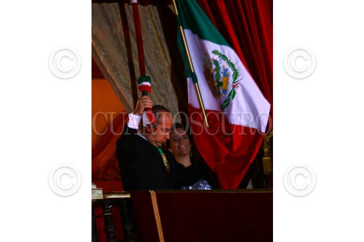 MÉXICO, D.F., 15SEPTIEMBRE2009.- El presidente Felipe Calderón dio Grito de Independencia, desde el balcon de Palacio Nacional, durante la ceremonia de su 199 aniversario. FOTO: SÁSHENKA GUTIÉRREZ/CUARTOSCURO.COM