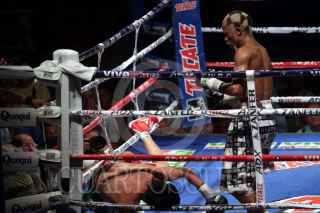 CANCÚN, QUINTANA ROO, 15SEPTIEMBRE2009.- Jorge "Travieso" Arce, pierde su cinturón del PIB peso super mosca ante el sudafricano Simphiwe Nongoayi, en lo que fue la función de gala "Que Viva México", esto en la plaza de toros. FOTO: AMARANTA PRIETO/CUARTOSCURO.COM
