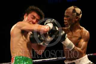 CANCÚN, QUINTANA ROO, 15SEPTIEMBRE2009.- Jorge "Travieso" Arce nada pudo hacer por retener su titulo de campeón mundial supermosca de la FIB ya que su rival Simphiwe Nongoayi fue demasiado superior en golpes que termino arrebatandole el cetro. FOTO: MARCO POLO GUZMÁN HERNÁNDEZ/CUARTOSCURO.COM