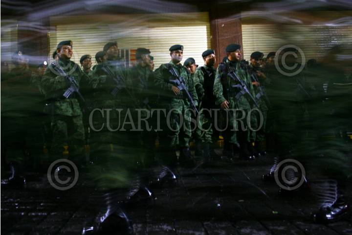 MÉXICO, D.F., 16SEPTIEMBRE2009.- Elementos del Ejercito Mexicano se preparan en calles aledañas al Centro Historico, previo al desfile por el 199 aniversario del inicio de la lucha de Independencia. FOTO: SÁSHENKA GUTIÉRREZ/CUARTOSCURO.COM