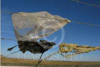 ZACATECAS, ZACATECAS, 16SEPTIEMBRE2009.- Luz Pétrea. Muy cerca de la ciudad de Zacatecas, por la carretera a Saltillo, en un tiradero de basura como los que hay en todo el territorio nacional predominan las miles de bolsas de plástico: se tiran diariamente y cada una tarda en degradarse hasta 150 años. Una imagen de aquello en lo que hemos convertido nuestro tiempo. FOTO: PEDRO VALTIERRA/CUARTOSCURO.COM