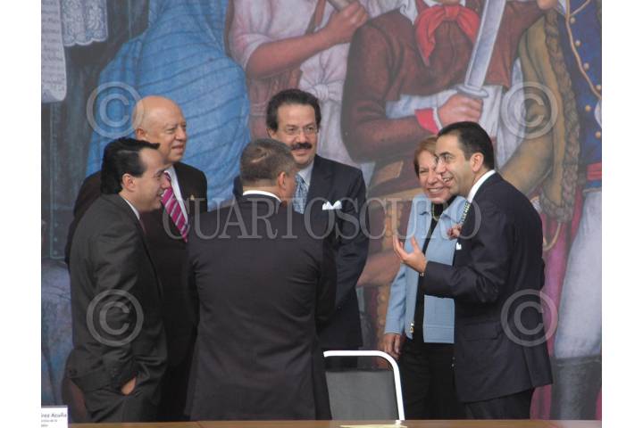 MÉXICO, D.F., 16SEPTIEMBRE2009.- Francisco Ramirez Acuña y Carlos Navarrete, presidentes de la mesa directiva en la Camara de Diputados y del Senado, respectivamente, firman el libro de visitantes distinguidos durante la ceremonia del 199 aniversario de la Independencia de México. FOTO: LUZ MORENO/CUARTOSCURO.COM
